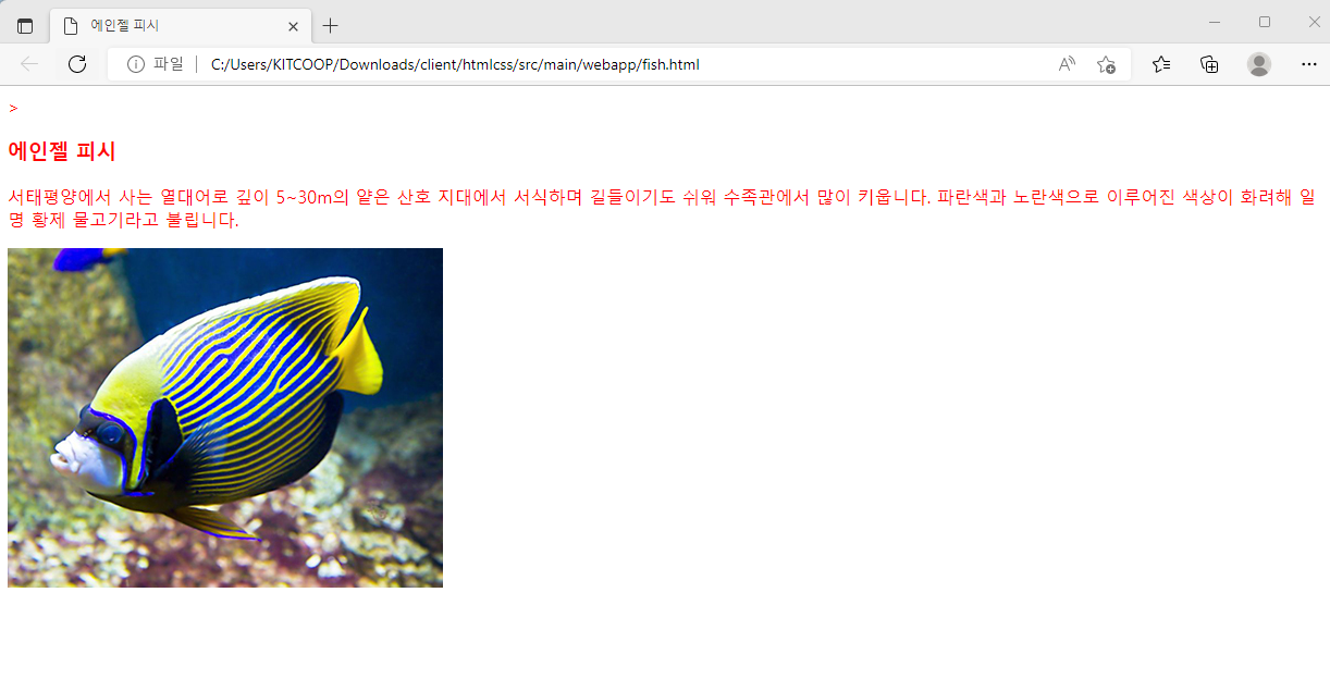 파란색과 노란색으로 이루어진 색상이 화려해 일명 황제 물고기라고 불립니다.</p>