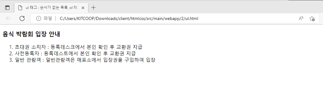 <title>ul태그 : 순서가 없는 목록, ol태그 : 순서가 있는 태그</title>
