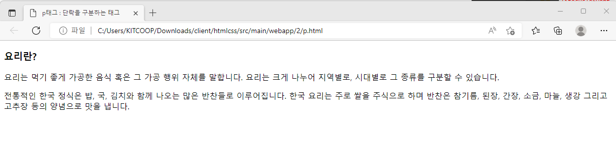 <!-- p태그는 단락별로 나누어줌/ 많이 쓴다고해서 단락이 벌어지지 않음.-->