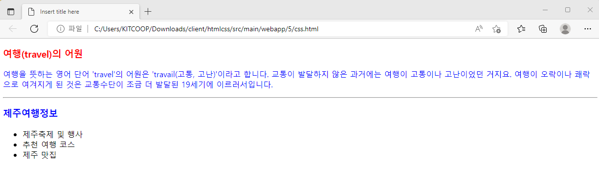| [HTML/CSS] CSS 적용 - 외부 CSS Style변경, 글자 스타일 지정, 목록 스타일 지정하기 (0) | 2023.04.17 |