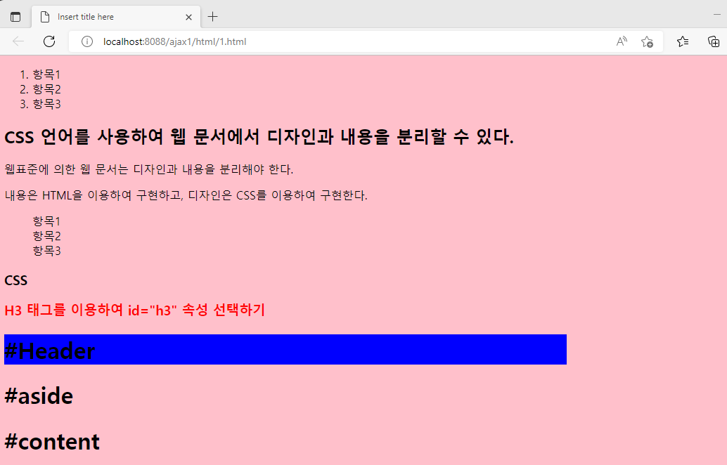 <h3 id="h3">H3 태그를 이용하여 id="h3" 속성 선택하기</h3>