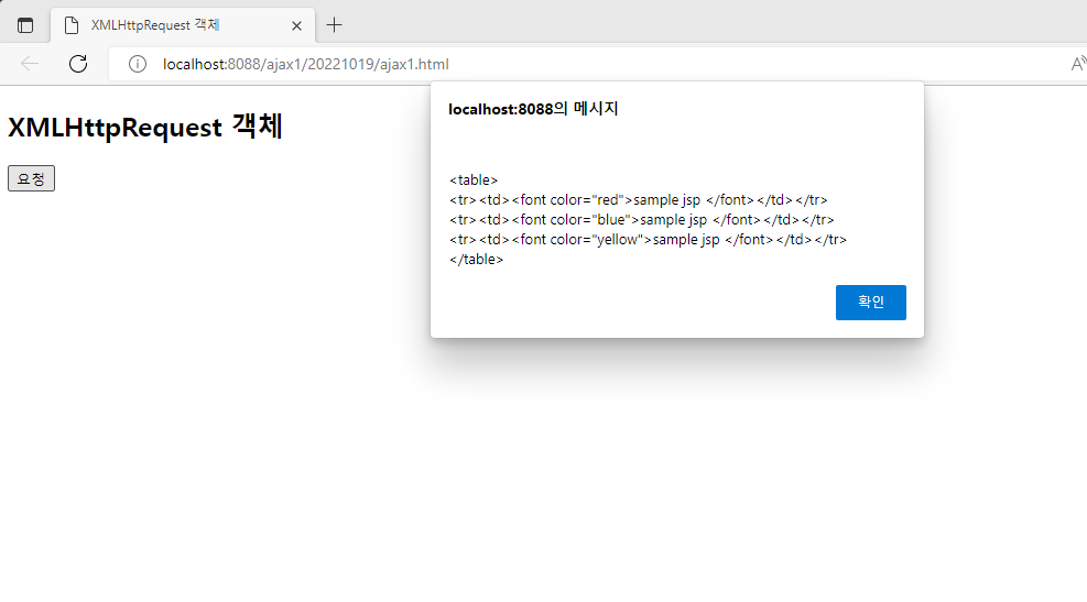 alert(this.responseText) //this = xhttp, responseText : 서버의 응답 메세지