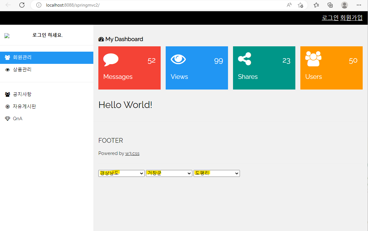 | [AJAX] ajax - jquery 이용한 시,군,구 선택 (0) | 2023.04.21 |