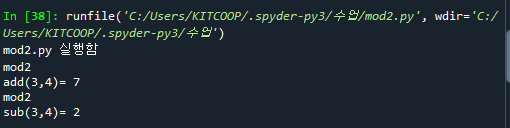 print("mod2 모듈 sub()=",m2.sub(40,30))