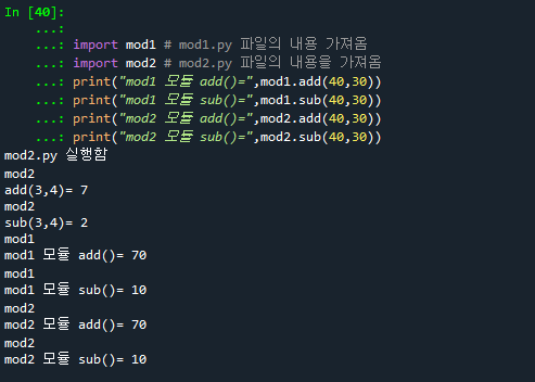 print("mod2 모듈 add()=",mod2.add(40,30))