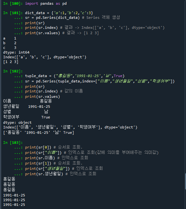sr = pd.Series(tuple_data,index=["이름","생년월일","성별","학생여부"])