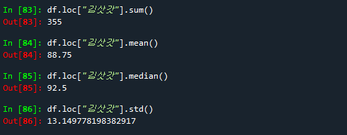 print("중간값:",df.loc["김삿갓"].median()) # 중간값