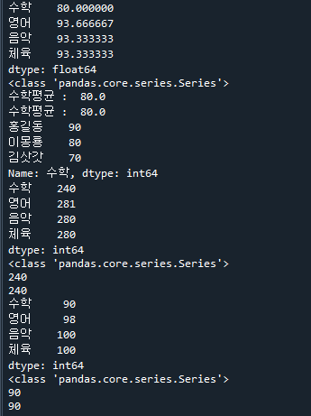 print("수학평균 : ",df['수학'].mean()) # Series.mean() 함수 이용