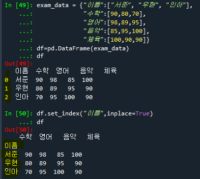 #1. 이름 컬럼을 인덱스 설정하기