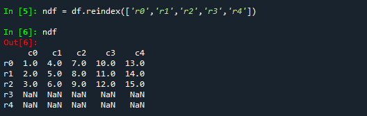 ndf2 = df.reindex(['r0','r1','r2','r3','r4', fill_value=0])