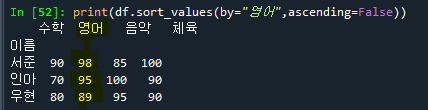 print(df.sort_values(by="영어",ascending=False))