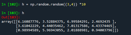 a = rg.random((2,3)) # 튜플로 생성. 2행 3열 배열. 0~1사이의 난수