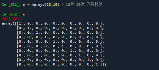 m = np.eye(10,10) # 10행 10열 단위행렬