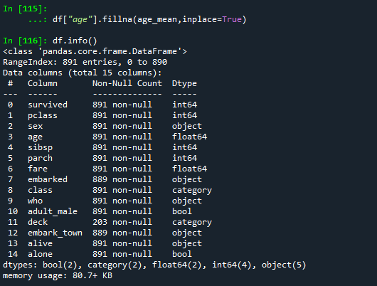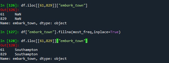 df["embark_town"].fillna(most_freq,inplace=True) # 결측값 수정