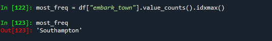 # 1. embark_town 중 가장 건수가 많은 값을 조회하기