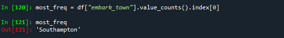 #2. embark_town 컬럼의 결측값은 빈도수가 가장 많은 데이터로 치환하기