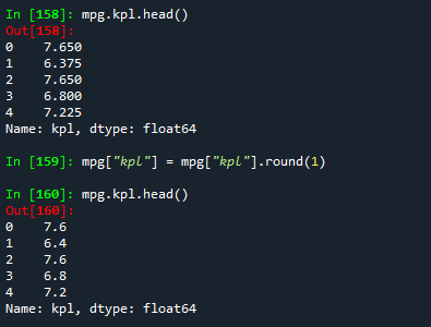 mpg["kpl"] = mpg["kpl"].round(1)