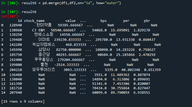 result6 = pd.merge(df1,df2,on="id", how="outer")