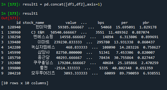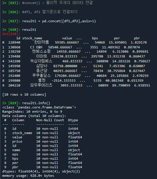 # concat() : 물리적으로 두개의 DataFrame을 연결시켜주는 함수