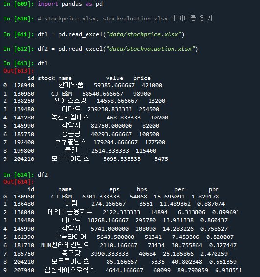 # stockprice.xlsx, stockvaluation.xlsx 데이터를 읽기