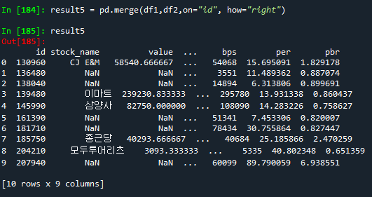 result5 = pd.merge(df1,df2,on="id", how="right")