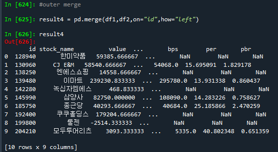 result4 = pd.merge(df1,df2,on="id", how="left")