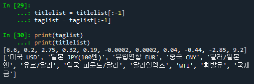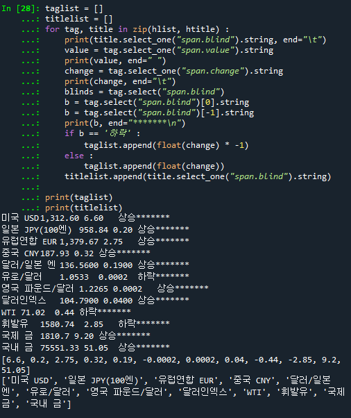 taglist.append(float(change) * -1) # 하락인 경우 음수로 표시