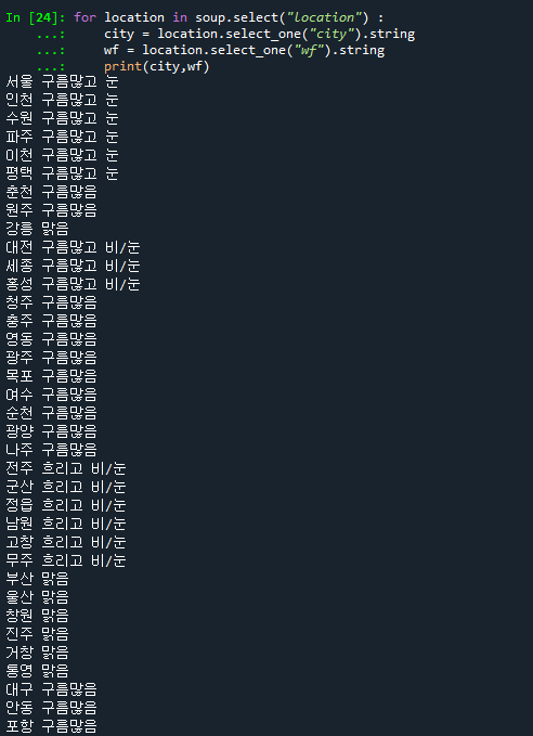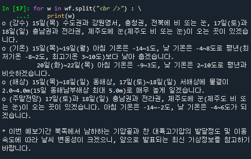 wf = soup.find("wf").string # wf 태그 선택