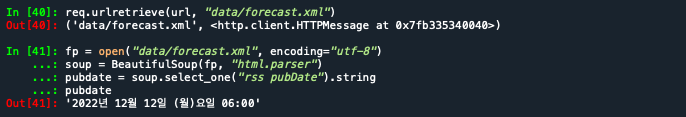 # forecast.xml 파일을 읽어서 BeautifulSoup 객체로 분석하기