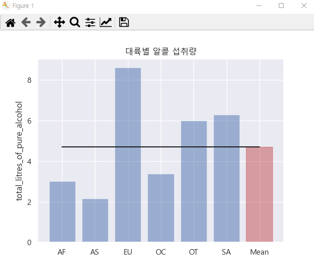 # 대륙별 total_litres_of_pure_alcohol 섭취량 평균 시각화 하기