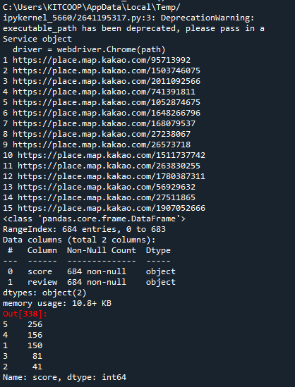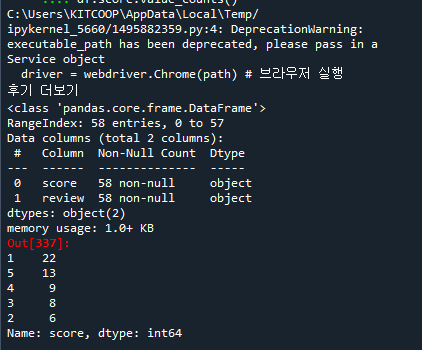 break # 후기 더보기 값이 없는 경우 오류 발생.