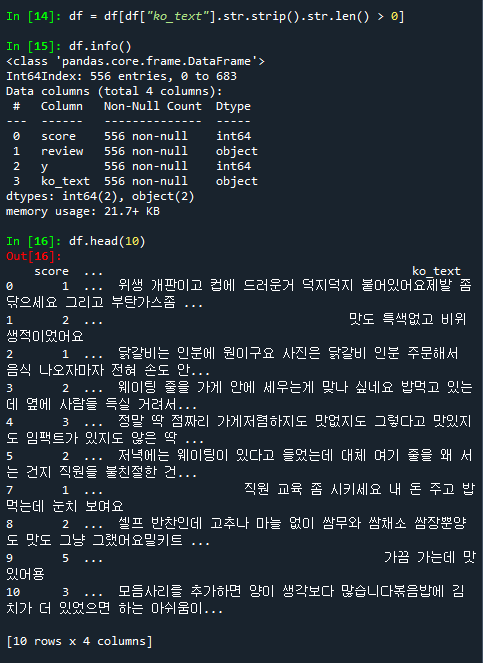 # ko_text컬럼의 내용이 있는 경우만 df에 다시 저장하기