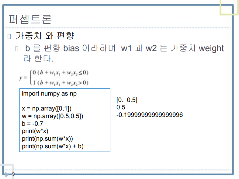 단일 퍼센트론 : 입력층 - 출력층