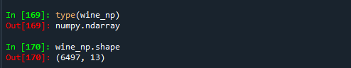 # wine_shuffle 데이터를 배열데이터 wine_np로 저장