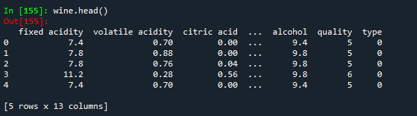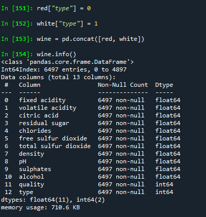 # red와인인 경우 type컬럼에 0, white와인인 경우 type컬럼에 1을 저장하기