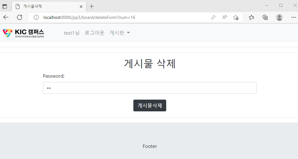 문제 : deleteForm.jsp 페이지를 이용하여 게시물 삭제 부분 완성하기