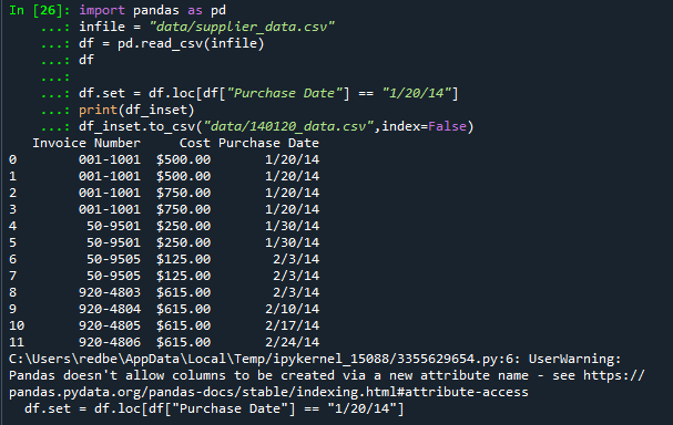 df.set = df.loc[df["Purchase Date"] == "1/20/14"]