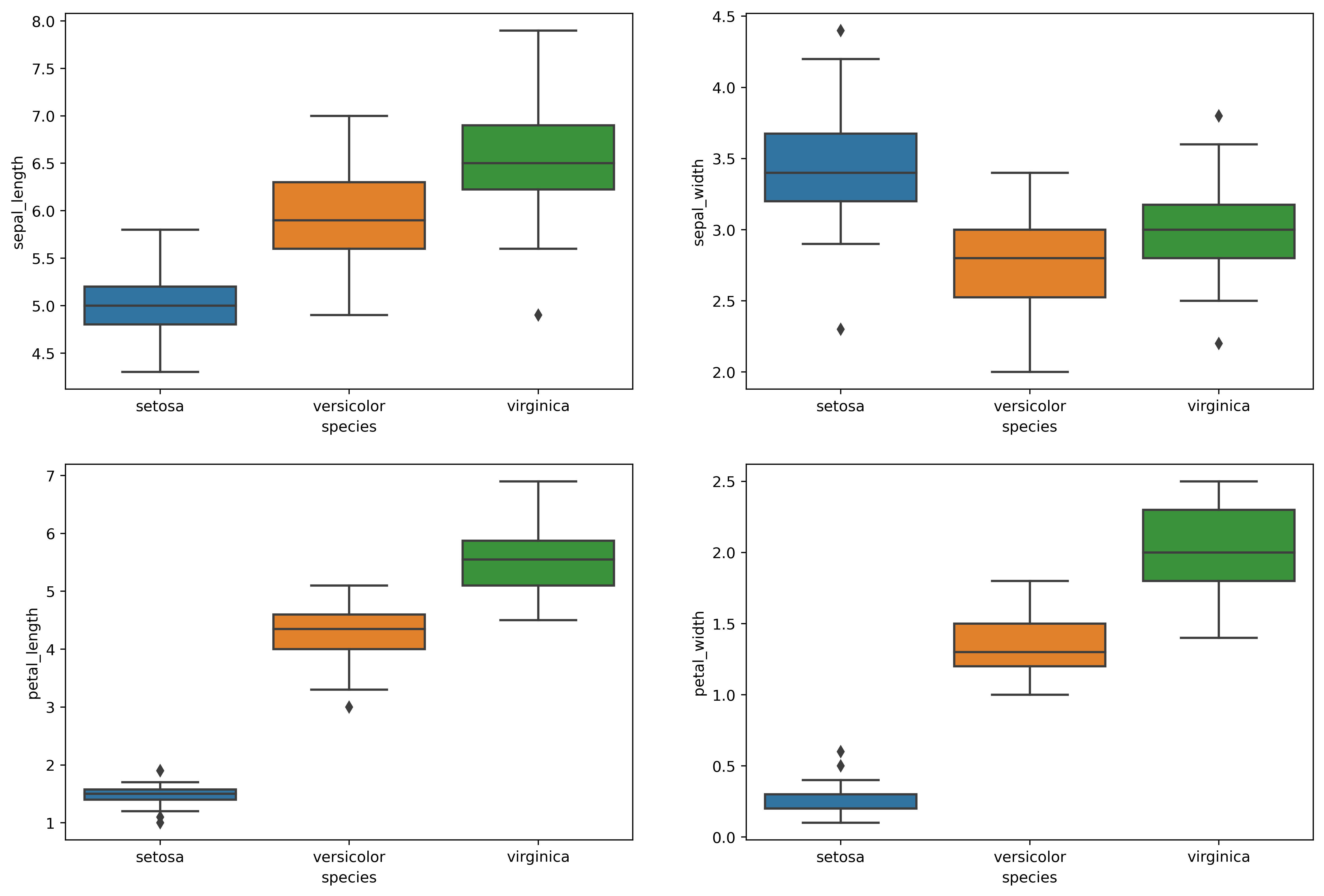 #2. iris 데이터 셋을 이용하여 각 컬럼의 값을 박스그래프로 작성하기