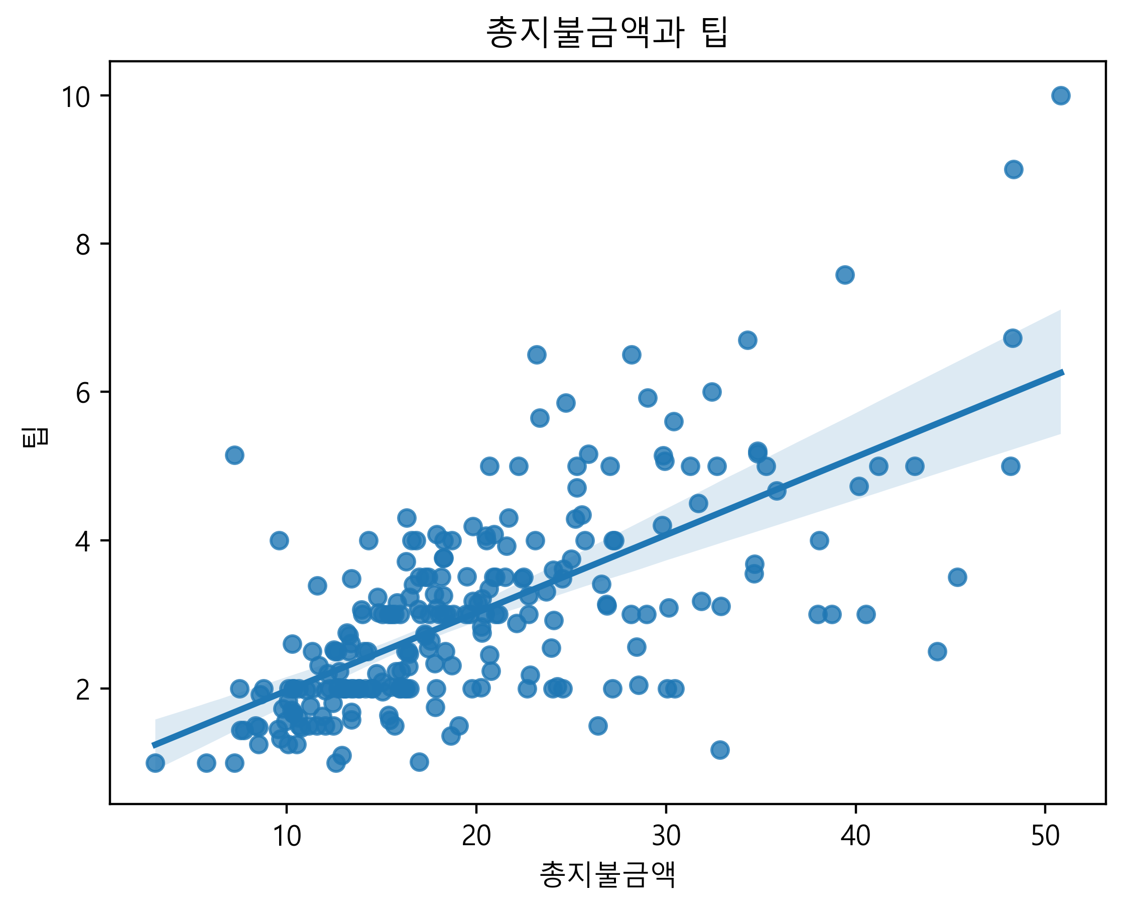 #3. tips 데이터 셋의 total_bill 별 tip 컬럼의 회귀선을 출력하기