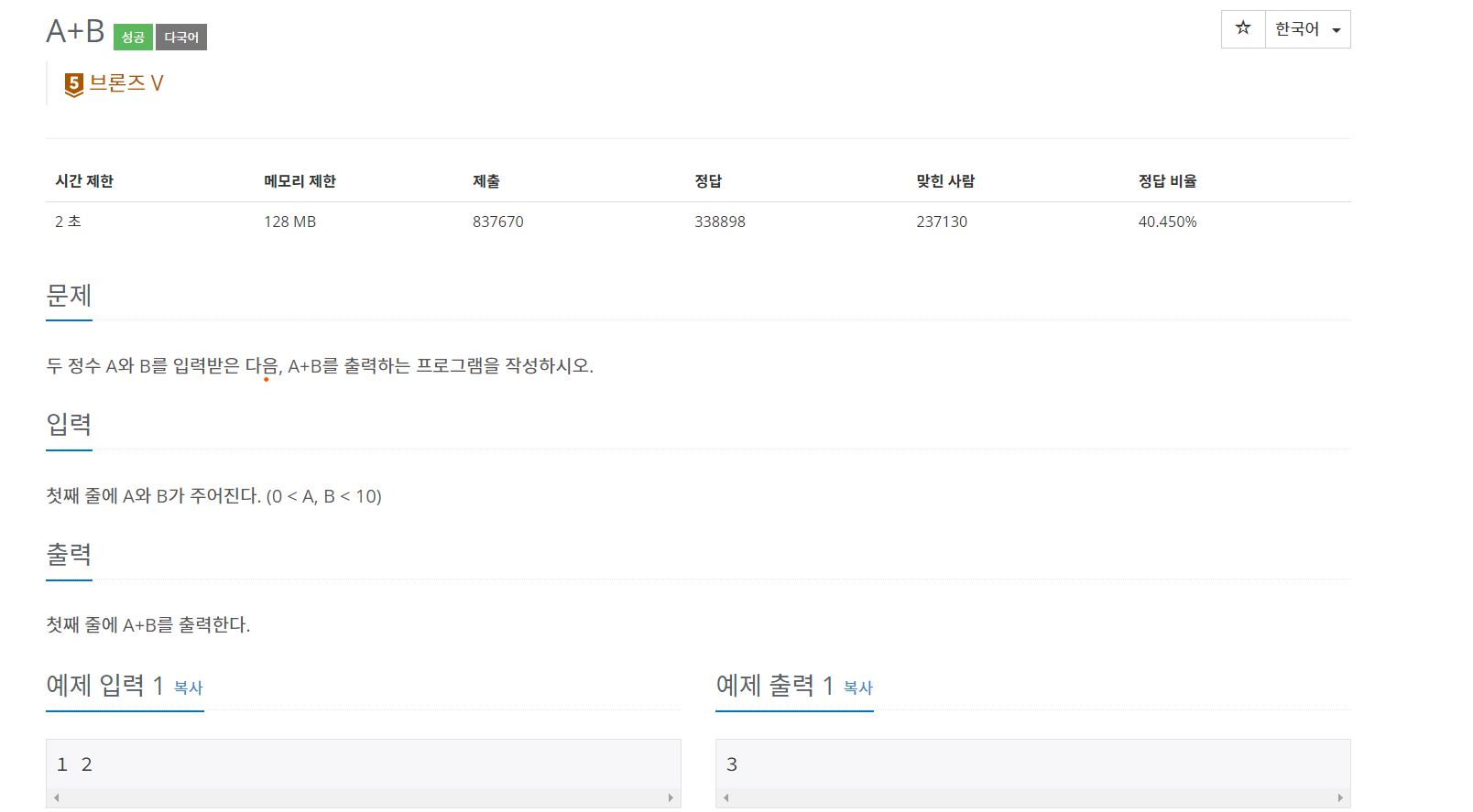 [Java]백준 1000번: 입출력과 사칙연산 단계 - A+B