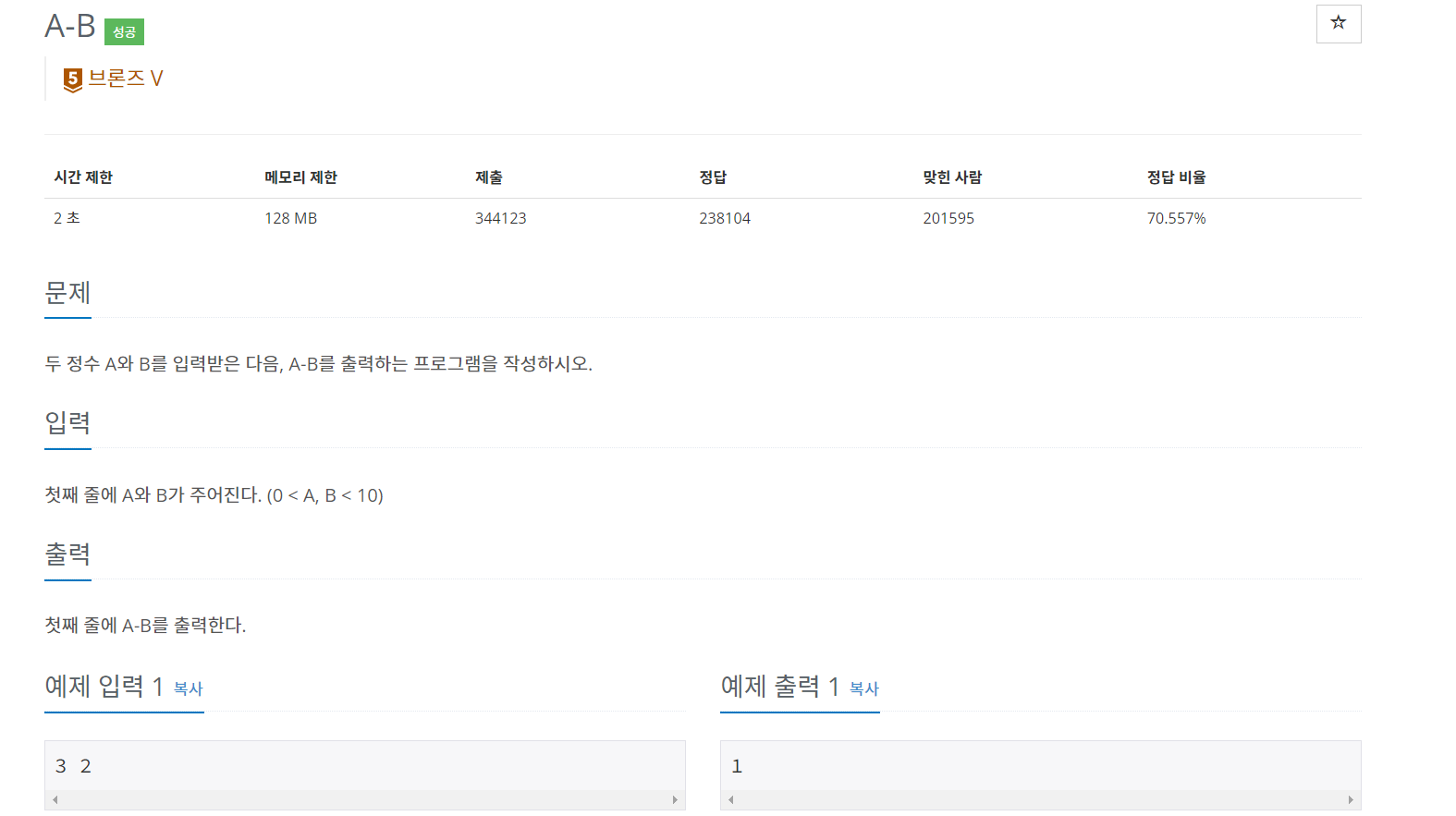 [Java]백준 1001번: 입출력과 사칙연산 단계 - A-B