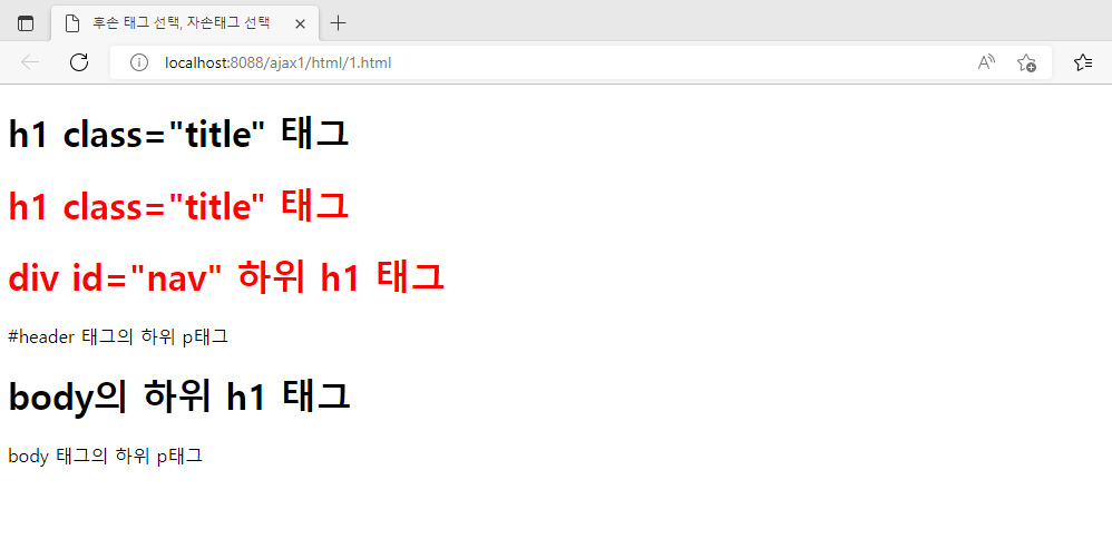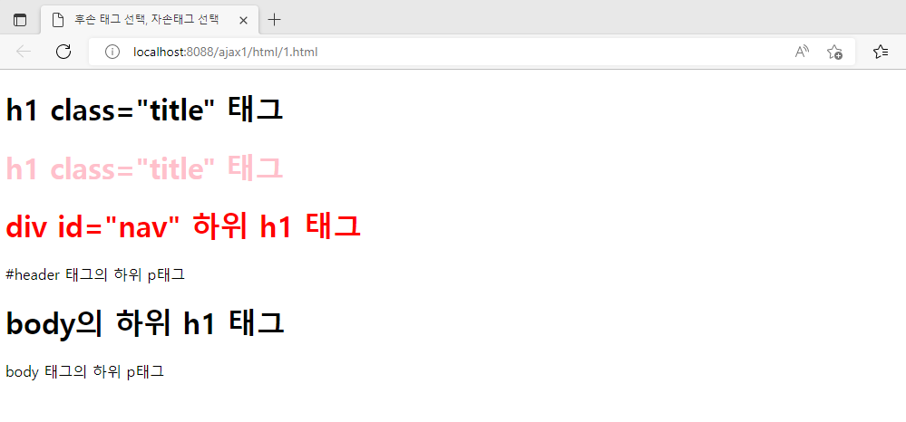 선택자1 선택자2 {} : 선택자1의 후손태그 중 선택자2인 태그 선택