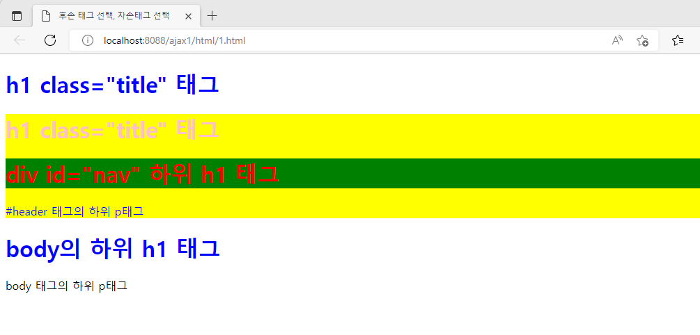 /*h1태그 중 class속성이 title인 태그의 배경색을 파랑색으로 설정*/