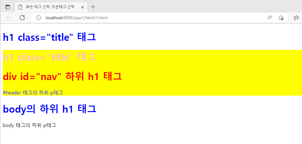 [HTML/CSS] CSS선택자(selector) - 후손 태그, 자손 태그