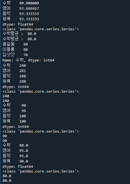 ##### 1. Series 자료형 (한개의 열 = 한개의 Series)