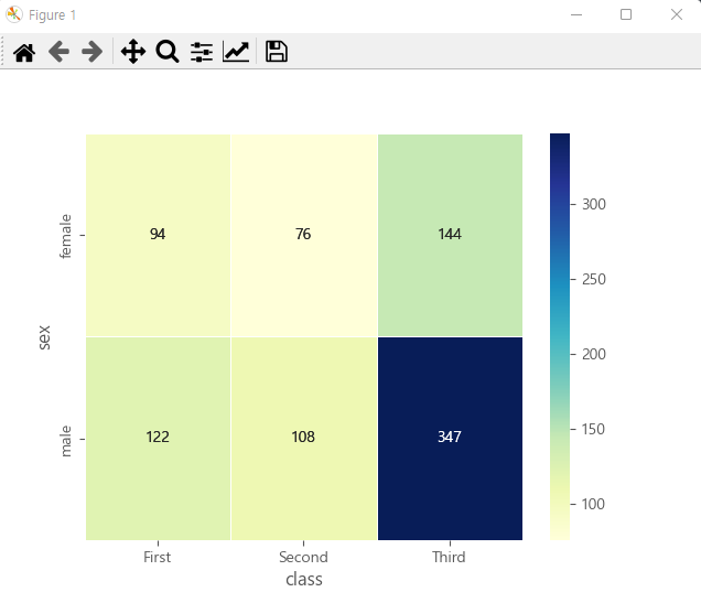 # pivot_table : 2개의 범주형(값이 딱 떨어지는 1학년, 2학년... 혹은 성별 같은)데이터를