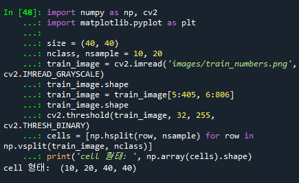 print('cell 형태: ', np.array(cells).shape) # (10, 20, 40, 40)